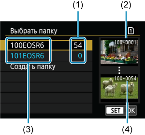 - (1) Число изображений в папке