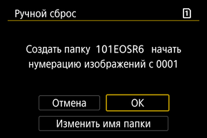 При выполнении сброса нумерации файлов вручную автоматически создается новая папка, и нумерация файлов изображений, сохраняемых в этой папке, начинается с 0001.