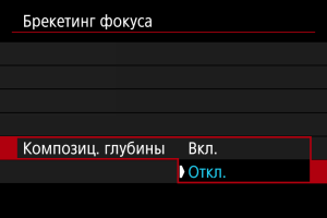 - Выберите [Откл.], если вы предпочитаете не компенсировать изменения яркости изображения во время брекетинга фокуса. Используйте этот параметр для целей, отличных от объединения глубины резкости снятых изображений, в Digital Photo Professional ().