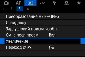 При отображении последующих изображений в режиме увеличения при просмотре сохраняется текущее положение увеличения.