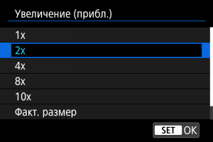 Можно указать, какое положение увеличения при просмотре требуется использовать при отображении последующих изображений: сохранять то же положение или использовать положение, заданное в параметре [Полож. увеличения].