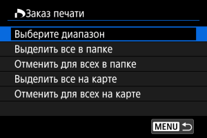 При выборе [Отменить для всех на карте] отменяется заказ печати для всех изображений с этой карты памяти.
