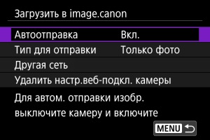 Изображения автоматически загружаются на сайт image.canon после включения камеры (или после выхода из режима автоотключения питания). Изображения, отправленные на сайт image.canon, можно загрузить в компьютер или передать в другие веб-службы.