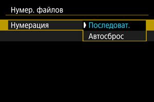 1. Выберите пункт [Настройка: Нумер. файлов] ().