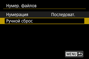 • Если требуется сбросить нумерацию файлов, выберите [Ручной сброс] ().