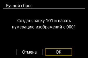 При выполнении сброса нумерации файлов вручную автоматически создается новая папка, и нумерация файлов изображений, сохраняемых в этой папке, начинается с 0001.