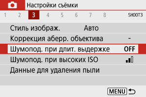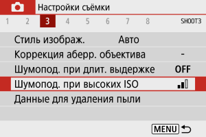 Обратите внимание, что пункт [Шумопод.при серийн.съёмке] недоступен, если задано качество изображения RAW или RAW+JPEG.