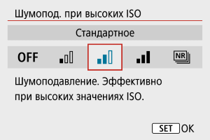 - Когда задано значение [Авто] или [Вкл.], обработка для шумоподавления может занимать время, равное времени выдержки.