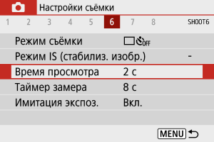 Установите значение [Не огранич.], чтобы снятое изображение оставалось на экране после съемки, или значение [Откл.], если не хотите, чтобы снимки отображались.