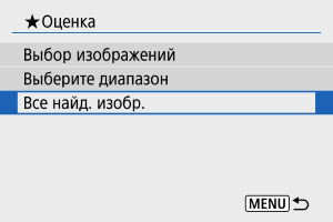 - При выборе пункта [Все найд. изобр.] устанавливается указанная оценка для всех изображений, отфильтрованных по условиям поиска.
