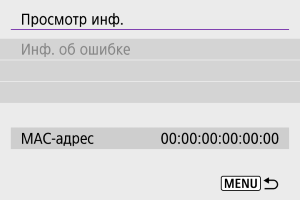 Можно проверить сведения об ошибке и MAC-адрес камеры.