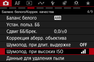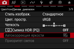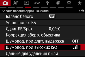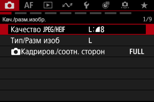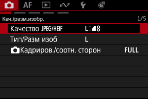 - Экран меню в режиме [Fv]/[P]/[Tv]/[Av]/[M]/[BULB]