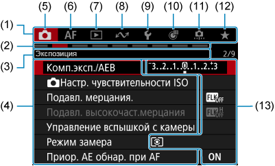 Экран меню в режиме [Fv]/[P]/[Tv]/[Av]/[M]/[BULB]