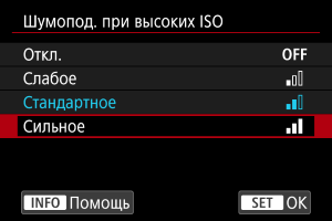- Текущая настройка указана синим цветом.