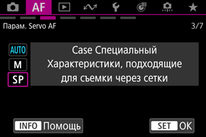 Можно задать параметры отслеживания Servo AF (чувствительность отслеживания объектов и ускорение/замедление слежения) для объекта и ситуации съемки.