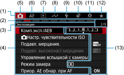 - (13) Параметры меню