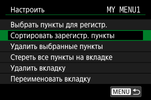 Можно изменить порядок пунктов, зарегистрированных в меню «Мое Меню». Выберите [Сортировать зарегистр. пункты], выберите пункт, положение которого требуется изменить, затем нажмите