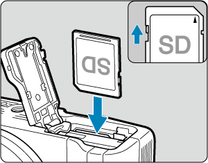- Вставьте карту этикеткой к передней стороне камеры до фиксации со щелчком.