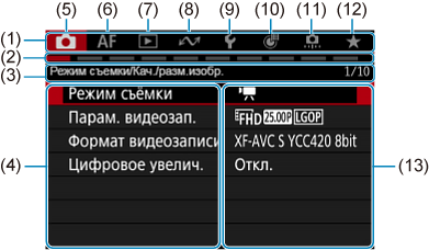 - (13) Параметры меню