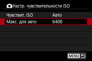 Для [AUTO] можно задать предел максимальной чувствительности ISO.
