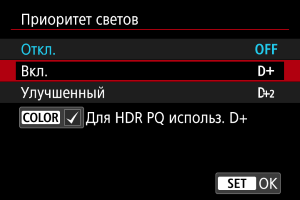 HDR] задано значение [Вкл.], даже если задать для параметра [