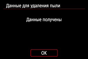 - После завершения съемки камера начинает сбор данных для удаления пыли. После получения данных для удаления пыли появляется сообщение.