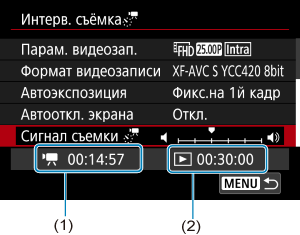 - Если задано число кадров 3600, длительность интервальной видеозаписи будет прибл. 2 мин для NTSC и прибл. 2 мин 24 с для PAL.