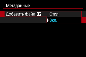Файлы пользовательского изображения можно внедрять в файлы видеозаписей, задав для параметра [Добавить файл ] значение [Вкл.], когда для параметра [