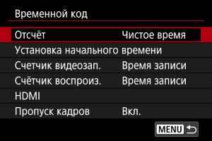 Для настройки временного кода используйте меню [: Временной код].