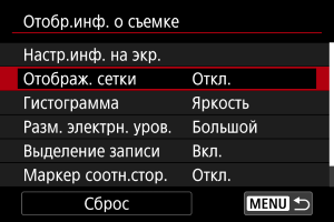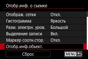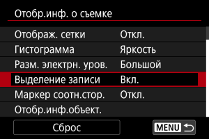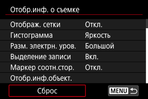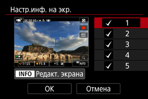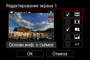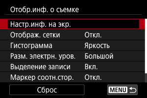 Можно настроить сведения и экраны информации, отображаемой на камере при съемке.