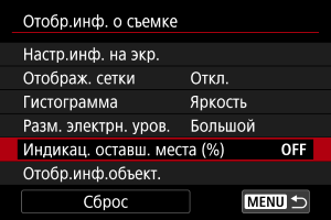 - Во время съемки фотографий или при записи на карты вместо оставшегося места отображается доступное количество кадров.