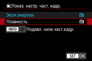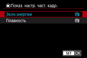 При съемке фотографий можно задать частоту кадров для отображения экрана съемки. Выберите, требуется ли экономить заряд аккумулятора или использовать для отображения высокую частоту кадров.
