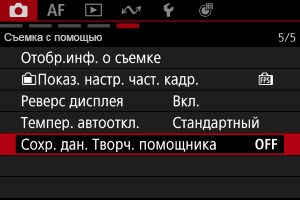 Сохранив настройки Творческого помощника, используемые в режиме [], можно пропустить этап повторного выбора эффекта при следующей съемке.