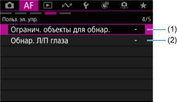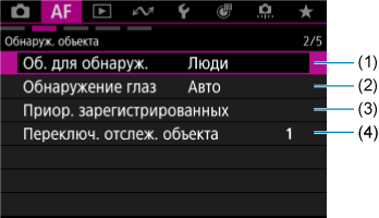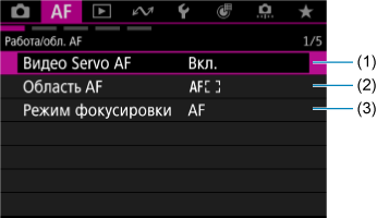 Меню вкладки: AF (запись видео)