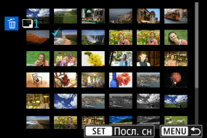 При просмотре изображений в индексном режиме можно указать первое и последнее изображения диапазона, чтобы удалить сразу все указанные изображения.