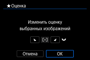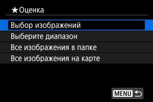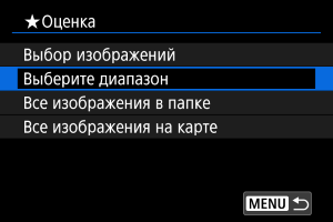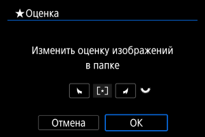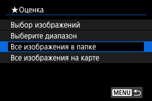 : Оценка] выбрать [Все изображения в папке] или [Все изображения на карте], оценка будет задана для всех изображений в папке или на карте памяти.