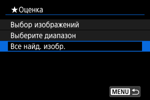 - При выборе пункта [Все найд. изобр.] устанавливается указанная оценка для всех изображений, отфильтрованных по условиям поиска.