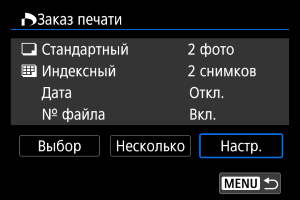 Можно задать такие параметры печати, как тип печати, печать даты, печать номера файла и т. д. Эти параметры печати применяются ко всем изображениям, указанным для печати. (Раздельное задание этих параметров для каждого изображения невозможно.)