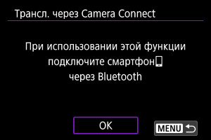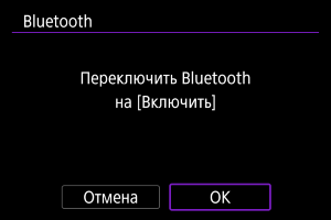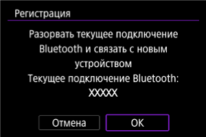 - Если камера уже сопряжена с другим устройством, отображается сообщение. Выберите [OK] для завершения текущего подключения Bluetooth.