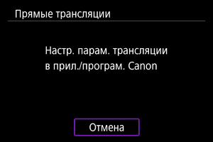 - Для запуска и остановки прямой трансляции используйте приложение Camera Connect. Прямую трансляцию можно также запускать и останавливать, нажимая кнопку видеосъемки на камере.