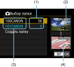 - Папка может содержать до 9999 изображений (номера файлов 0001–9999). Когда папка заполнена, автоматически создается новая папка с порядковым номером, увеличенным на единицу. Кроме того, новая папка создается автоматически при выполнении ручного сброса (). Можно создавать папки с номерами от 100 до 999.