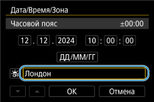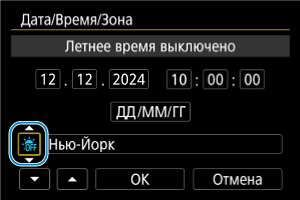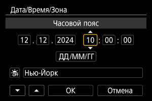 - После изменения значения параметра [Пояс/часовая разница] убедитесь, что установлены правильные значения даты и времени.