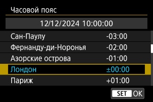При первом включении питания или после сброса значений даты, времени и часового пояса сначала выполните приведенные шаги для установки часового пояса.