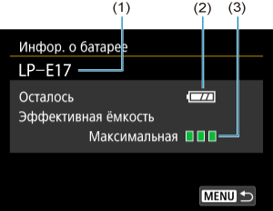 - Рекомендуется использовать оригинальные аккумуляторы Canon LP-E17. При использовании любых других аккумуляторов, кроме оригинальных Canon, возможно ухудшение характеристик камеры или возникновение неполадок.