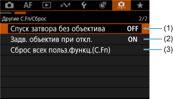 При выборе пункта [: Сброс всех польз.функц. (C.Fn)] производится сброс всех настроек пользовательских функций.