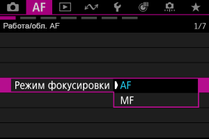 Задайте для параметра [Автофокус: Режим фокусировки] значение [AF].