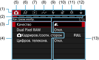 - (13) Параметры меню