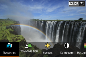 для съемки пейзажей и закатов, а также вне помещения цвета получаются более насыщенными. Если требуются другие цвета, поверните диск установки режима в положение Fv, P, Tv, Av или M, выберите стиль изображения, отличный от [