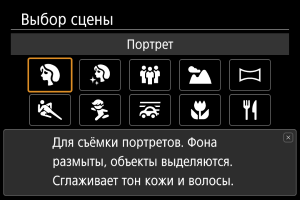 Используйте режим [] (Портрет) для размытия заднего плана и акцентирования внимания на снимаемом человеке. Кроме того, в этом режиме телесные тона и волосы выглядят мягче.