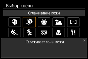 Используйте режим [] (Сглаживание кожи), чтобы кожа на снимках выглядела красивее. За счет обработки изображения кожа выглядит более гладкой.